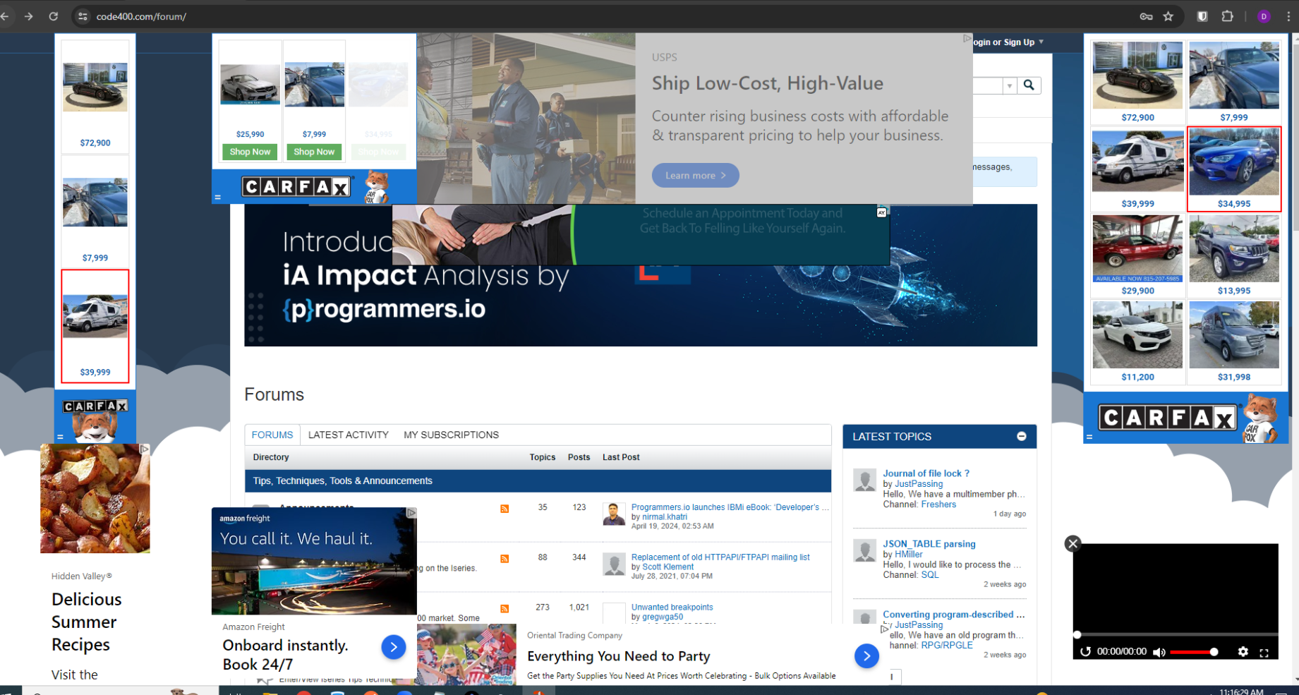 I open the website and I think at least 10 or so advertisements cover my screen. I can't get to the top of the website I can't get to the bottom of the website. Open a forum message and you're blocked on part of it because the advertisement covers the bottom and there's no way to move the screen any further down. Pretty bad.