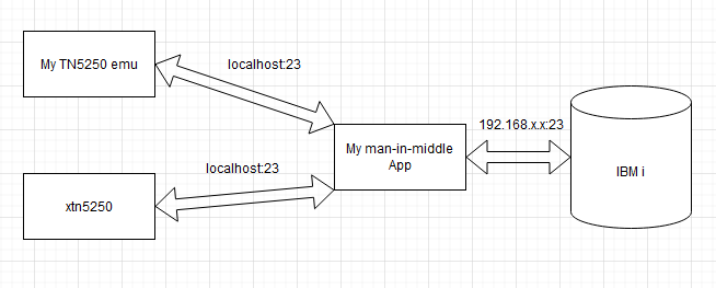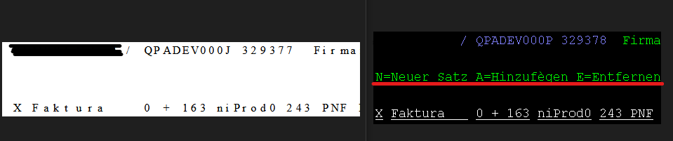 My implementations doesnt show a specific text compared to xtn5250. First i thought my implementation is buggy, but after looking at the data my man-in-middle is recording, my implementation didnt even got this line from the ibm i.