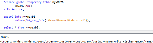MYXMLCOL1 char(10) path '.'